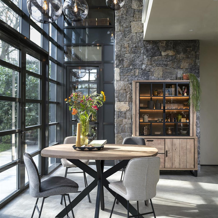 Les chaises de bar de la collection Ambre sont disponibles en deux hauteurs : une chaise de bar normale de 98 cm de haut avec une assise à 67 cm et une version extra haute de 114 cm de haut avec une assise à 82 cm. Voici la version normale. La chaise de bar arbore un design moderne avec un rétrécissement sur le dossier et est recouverte de deux tissus : le cuir synthétique Secilia sur l'avant et le tissu chenille Toba sur l'arrière. Ce modèle est le coloris beige.