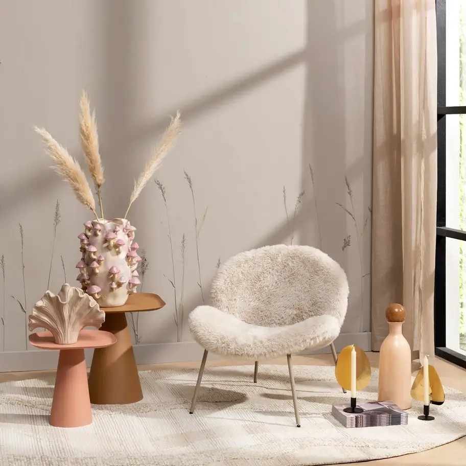 Le fauteuil Freddy de COCOmaison combine un design tendance avec un confort ultime. Le fauteuil est recouvert d'un tissu doux et agréable au toucher dans une couleur beige chaude. Le cadre assorti, réalisé dans la même couleur que le revêtement, donne au fauteuil Freddy un look moderne et épuré. Ce fauteuil n'est pas seulement agréable pour s'asseoir, mais il constitue également un bel ajout à votre intérieur. Le fauteuil Freddy est également disponible en vert et en cuivre.